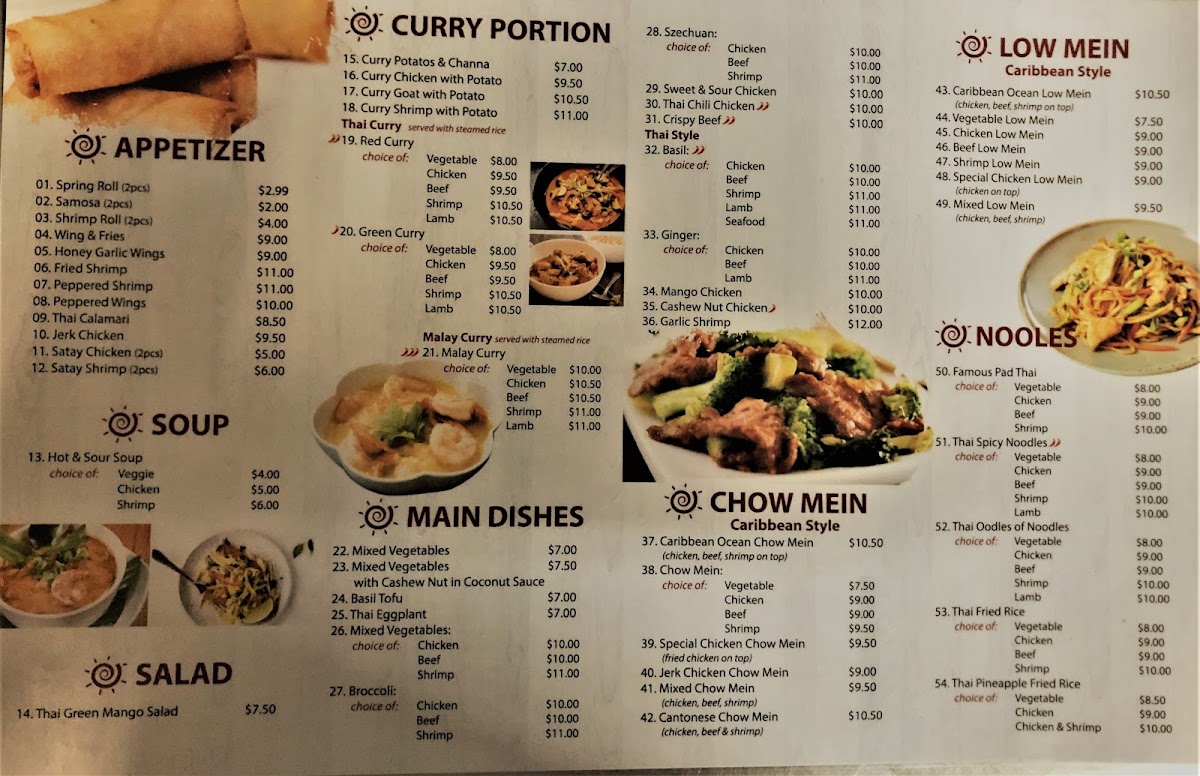 The menu is a treasure trove of flavors, showcasing dishes that are both comforting and exotic. Start your meal with a refreshing Thai Mango Salad or crispy Thai Calamari. For mains, the Jerk Chicken served atop a generous bed of lo mein captures the perfect balance of spice and savory goodness, guaranteed to ignite your taste buds. If you’re in the mood for fried rice, try the Chicken Fried Rice or explore the rich textures of the Shrimp Fried Rice. Complement your meal with a drink from their selection of pops, juices, or simply water to refresh your palate.